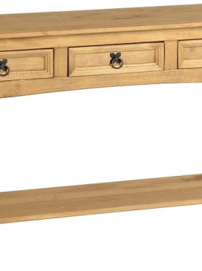 Corona 3 Drawer Console Table with Shelf – Distressed Waxed Pine – WBF