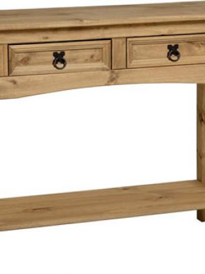Corona 2 Drawer Console Table with Shelf – Distressed Waxed Pine – WBF