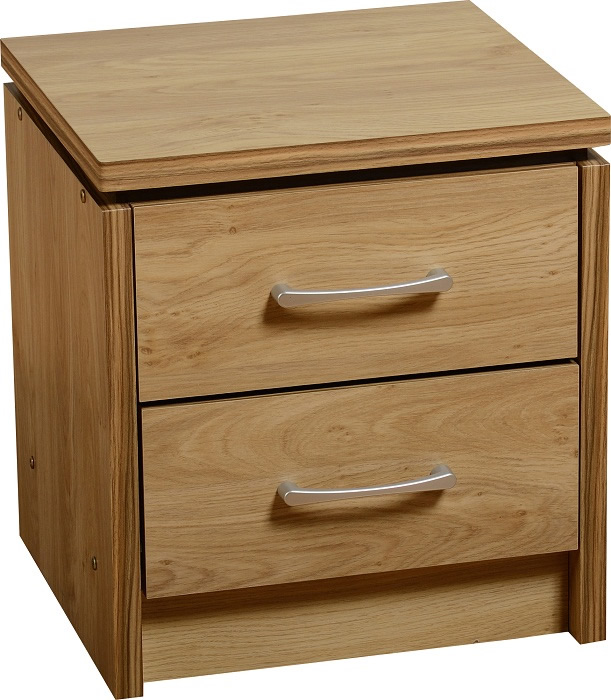 Charles 2 Drawer Bedside Chest – Oak Effect Veneer with Walnut Trim – WBF