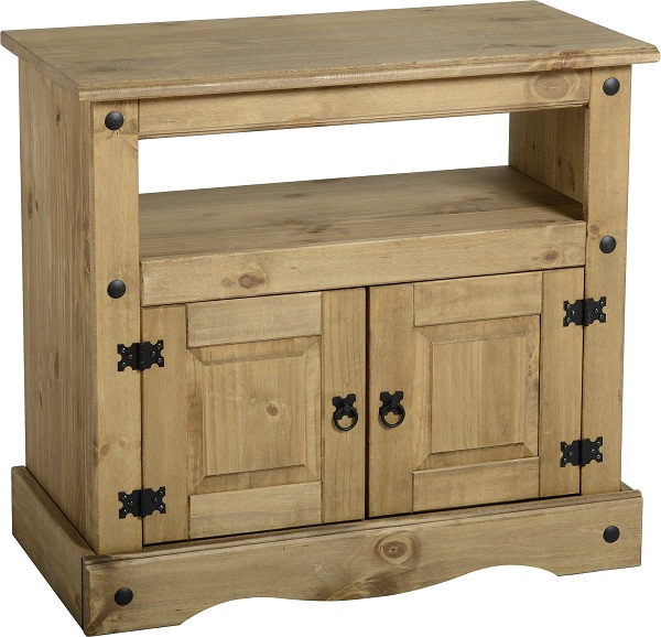 Corona 2 Door 1 Shelf Flat Screen TV Unit – Distressed Waxed Pine – WBF