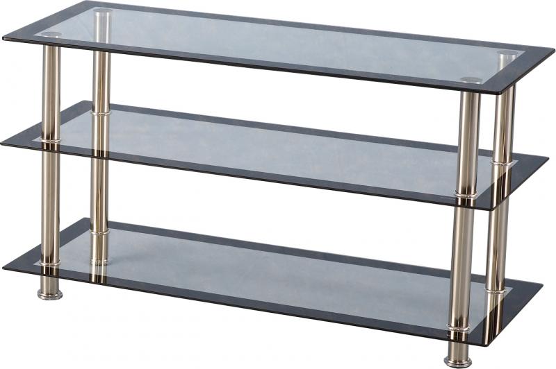 Harlequin TV Unit – Clear Glass/Black Border/Silver – WBF