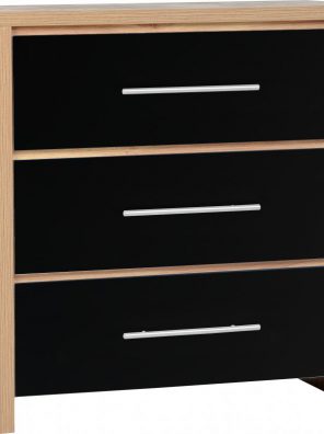 Seville 3 Drawer Chest – Light Oak Effect Veneer/Black High Gloss – WBF
