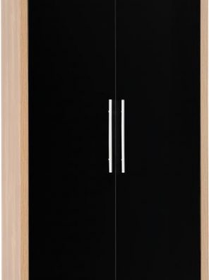 Seville 2 Door Wardrobe – Light Oak Effect Veneer/Black High Gloss – WBF
