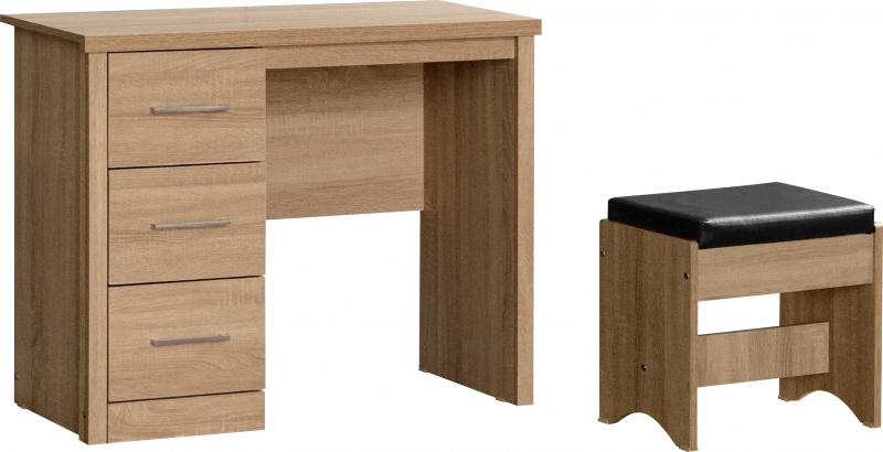 Lisbon 3 Drawer Dressing Table Set – Light Oak Effect Veneer/Black Faux Leather – WBF