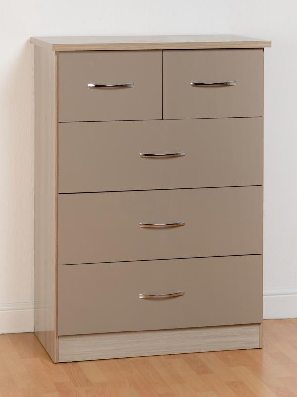 Nevada 3+2 Drawer Chest - Grey Gloss/Light Oak Effect Veneer - WBF