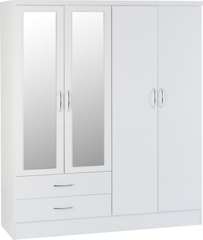 Nevada 4 Door 2 Drawer Mirrored Wardrobe – White Gloss – WBF