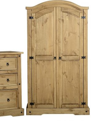 Corona 2 Door 1 Drawer Wardrobe – Distressed Waxed Pine – WBF