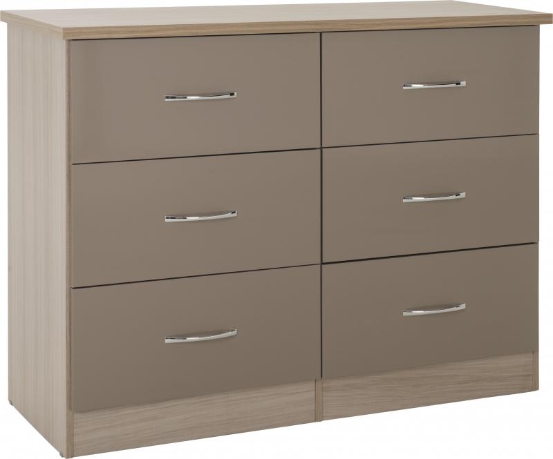 Nevada 6 Drawer Chest – Oyster Gloss/Light Oak Effect Veneer – WBF