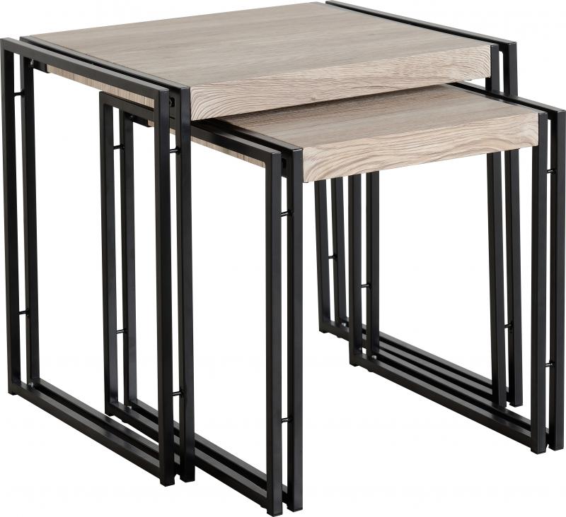 Warwick Nest of 2 Tables – Oak Effect Veneer/Black – WBF